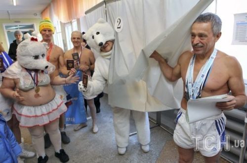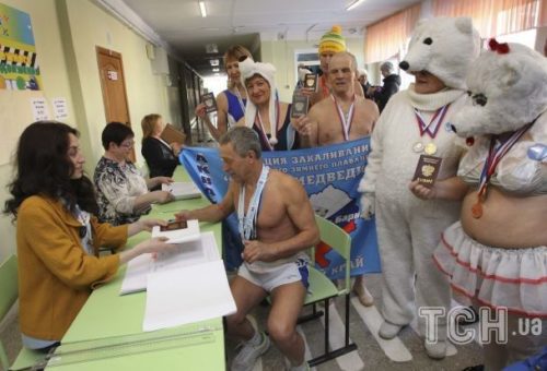Например, в Барнауле на участок пришла целая группа “моржей” в исподнем. Некоторые из них надели маски белых медведей.