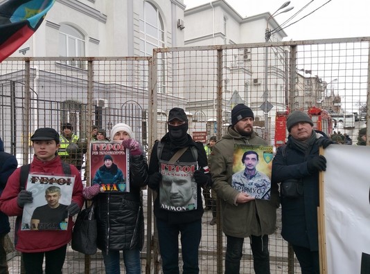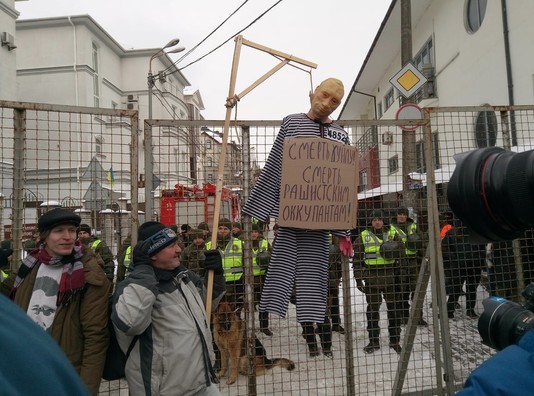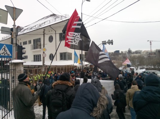 Несколько десятков активистов собрались возле памятника Леси Украинки в Киеве и прошли к консульству РФ. Подойти непосредственно к зданию они не смогли, поскольку дорогу перегородили сеткой и границами нацгвардейцев. При этом, у здания было несколько десятков автобусов с силовиками и пожарное авто.