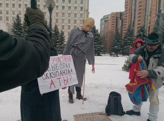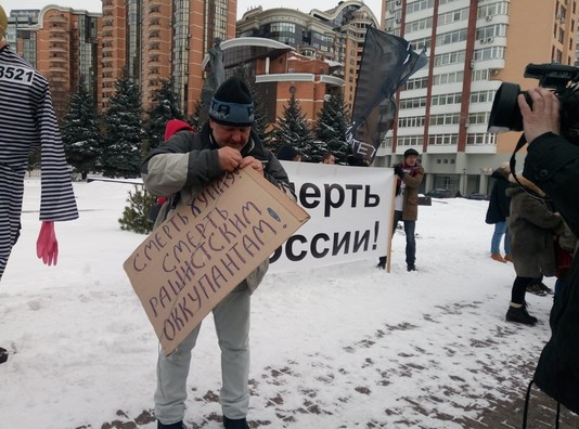 В Киеве возле консульства Российской Федерации прошла акция "Черного комитета", ОУН и КУПР, во время которой граждане высказались против проведения выборов президента России на территории Украины, сообщает корреспондент UA1.