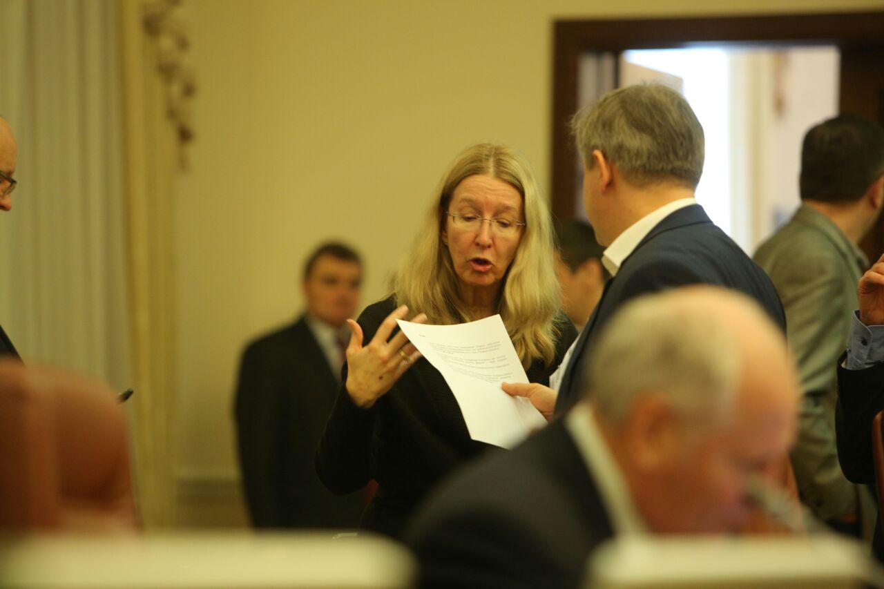 Отметим, что больше существенных изменений во внешнем виде и.о. МОЗ не произошло. На заседании Кабмина она была в строгом костюме темного цвета.