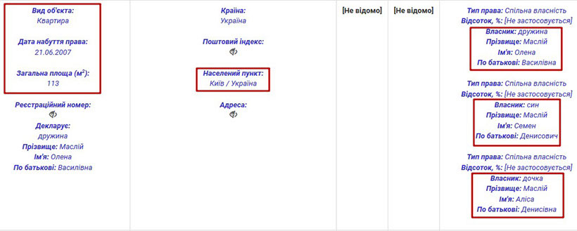 Но еще больше по размеру, чем дом - квартира супругов. К большому сожалению, этого жилья нет в реестре прав на недвижимое имущество. Поэтому всю информацию о квартире берем из декларации Дениса Маслия. Площадь квартиры прокурорской семьи - 255 кв. м., а указанная стоимость - почти 2 млн грн.
