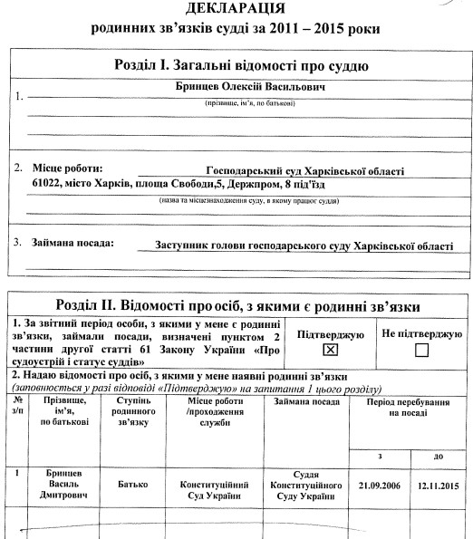 Интересно, что одним из оснований отрицательного заключения ОСД было то, что судья не указал в своей декларации родственных связей сестру Елену Васильевну Маслий, которая работает в прокуратуре.