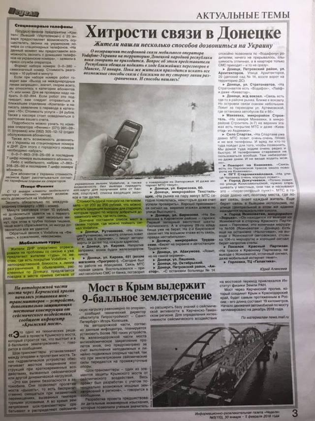 Первый замглавы Национальной полиции Украины Вячеслав Аброськин опубликовал на своей странице в соцсети новости о попытках боевиков «ДНР» заработать на связи.