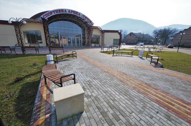 Тячів — місто невелике, і ми швидко приїжджаємо на вулицю Вайди, 15, на чепурну площу, вимощену кольоровою тротуарною плиткою. Тут я розумію, що мав на увазі Іван Ковач, кажучи, що із задоволенням відкрив би ще зо два спорткомплекси. Спортивна арена «Тячів» заледве сягає по висоті третього поверху сусідньої хрущовки. До цього комплексу цілком можна додати слово «міні». Він — сама ощадливість та ефективність. Та мені все одно здається, що він завеликий для десятитисячного міста.