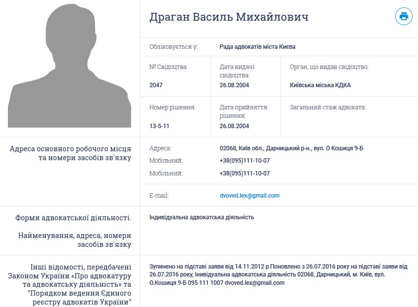 Працювати в органах прокуратури Василь Драган перестав після того, як було звільнено Шокіна. Сьогодні Василь Михайлович, схоже, займається адвокатською діяльністю та зареєстрований фізичною особою-підприємцем.