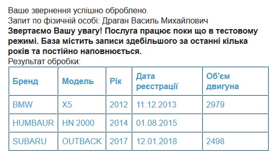 Із Єдиного державного реєстру МВС України ми також дізналися, що Василь Михайлович Драган придбав новеньке SUBARU OUTBACK 2017 року. Сьогодні таке авто коштує майже 43 тис. доларів. Втім, інформації щодо зміни в майновому стані у зв’язку з купівлею нового автомобіля Олена Драган не подавала.