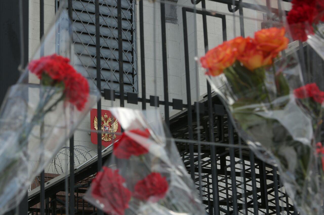 Украинцы принесли цветы и детские игрушки к посольству РФ из-за трагедии в Кемерово