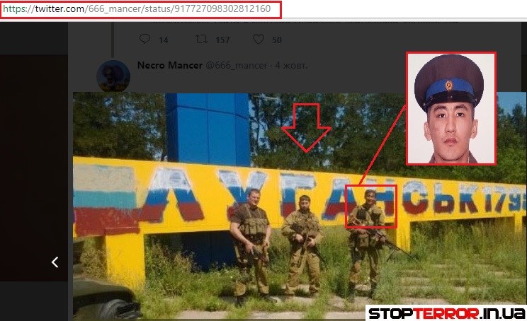 "Помимо того, что Сахипов Руслан находился в Сирии, как военнослужащий РФ он побывал и на территории Украины, в Луганской области. Тоже выполняя очередное специальное задание, за что и был награжден медалью "За Веру и Волю". И в подтверждение пребывания Сахипова в рядах иррегулярных подразделений РФ, мы приводим фотоматериалы, на которых без труда можно опознать последнего", - пишут волонтеры.
