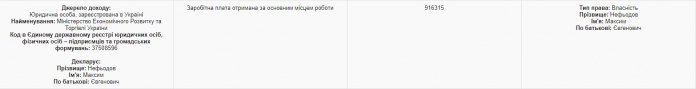 За 2017 рік на посаді заступника міністра Нефьодов заробив більше 900 тисяч гривень.
