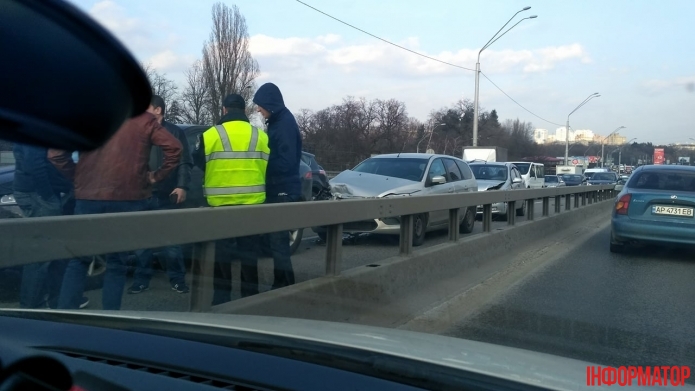 Подія трапилася сьогодні у другій половині дня, на мосту поблизу станції метро “Нивки”. Усі машини отримали серьйозні механічні пошкодження.