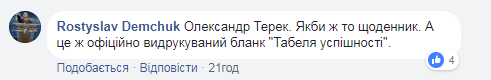 "Если бы дневник. А это ведь официально отпечатанный бланк "Табеля успеваемости", - написал Демчук.