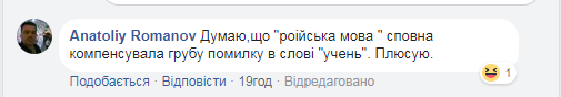 "Думаю, что "роіська мова" вполне компенсировала грубую ошибку в слове "ученік". Плюсую", - отмечает пользователь Анатолий Романов.