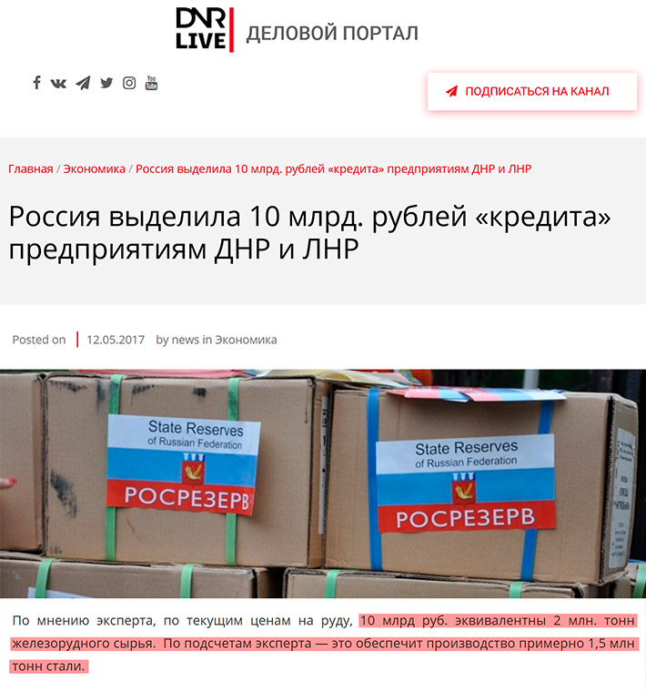 что 10 млрд рублей, которые в мае прошлого года правительство России выделило Росрезерву на закупку «сырья и материалов металлургической промышленности» для «ДНР-ЛНР» эквивалентны 2 миллионам тонн железорудного сырья. Что обеспечит производство примерно 1,5 млн тонн стали.