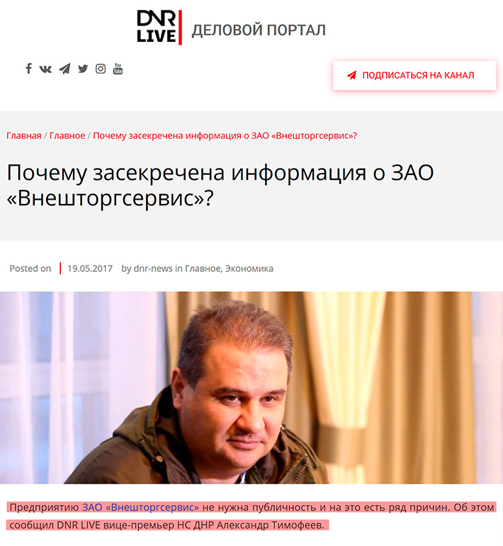 Предприятию ЗАО «Внешторгсервис» не нужна публичность и на это есть ряд причин. Об этом сообщил DNR LIVE вице-премьер НС ДНР Александр Тимофеев.)