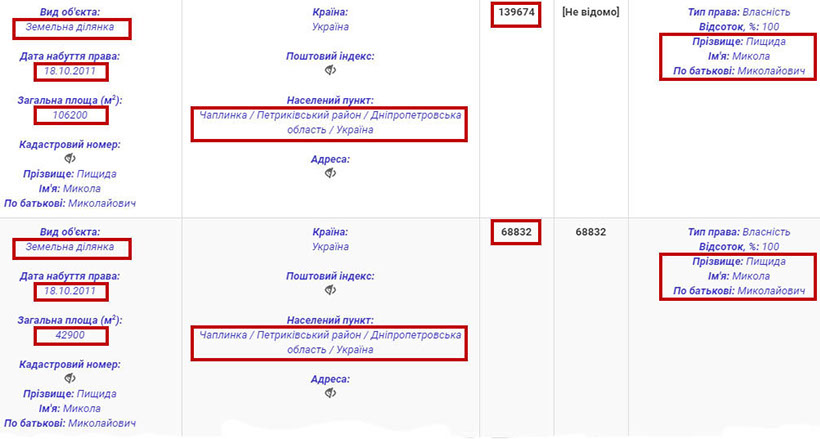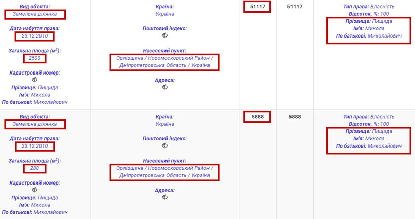 У контексті майнових статків судді ми також проаналізували й інші аспекти. Так, у декларації за 2016 рік зазначається, що Микола Пищида власник квартири на 62 кв. м. у Дніпрі та чотирьох земельних ділянок у селі Орлівщина Дніпропетровської області сумарною вартістю 265 511 грн.