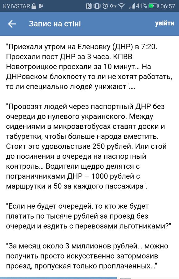 "Тогда, как перед Пасхальными праздниками пассажиропоток становится более интенсивным - увеличилась и жажда боевиков к наживе. Граждане отмечают, что если бы очередей не было, то никто бы за пропуск не платил, а так - приходится", - говорится в сообщении.