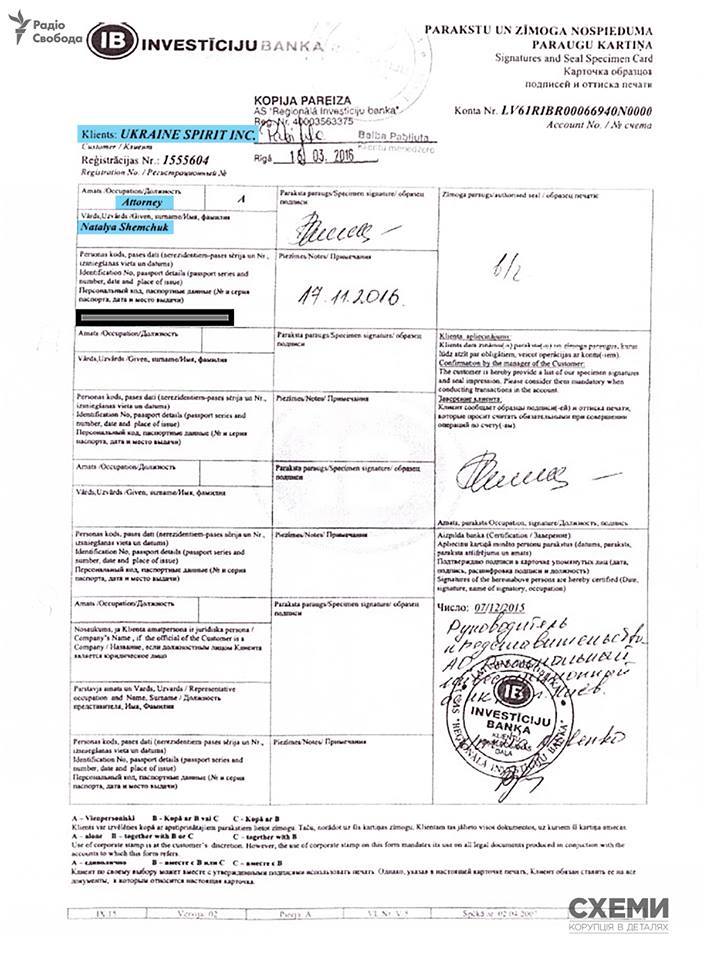 Про це свідчать документі з латвійського банку, повідомляє в Facebook "Схеми: корупція в деталях".