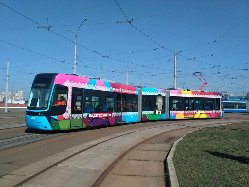 Этот трамвай является еще одним из серии «Выдающиеся украинцы». Кроме портрета Лобановского на борту состава пассажиры также смогут посмотреть короткий видеоролик о тренере киевского «Динамо» на видеоэкране внутри вагона.