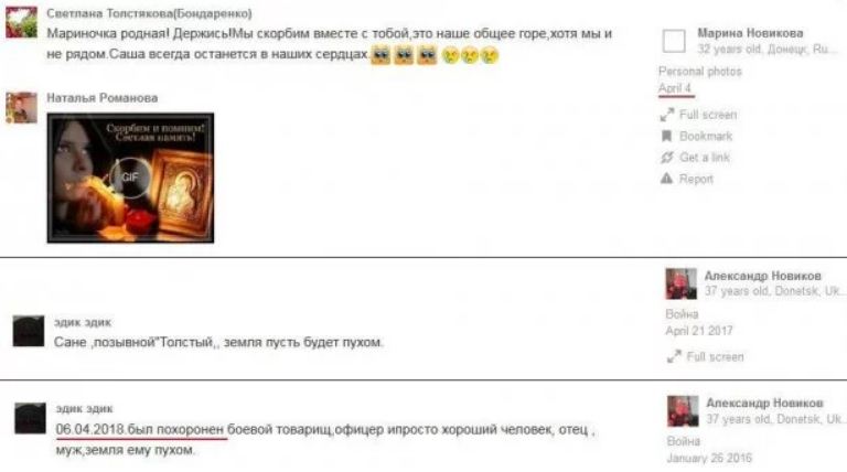 «Новиков Александр Александрович «Толстый» (Донецк, 07/01/81) стал «грузом-200» 04/04/18», – говорится в сообщении.