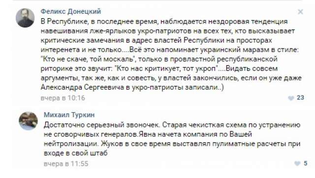 В то же время пользователи соцсети в своих комментариях к посту отмечают, что «навешивание ярлыков патриотов Украины» на всех, кто критикует действующую «власть ДНР», становится традицией.