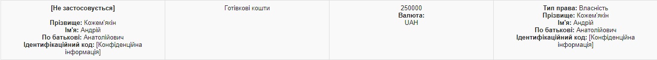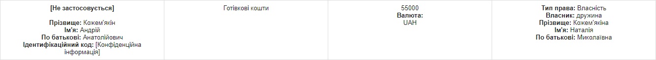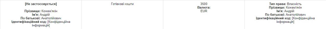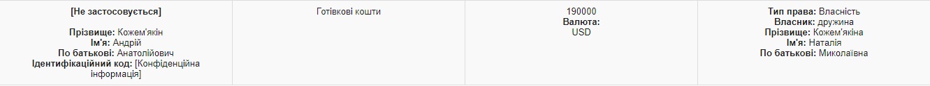 Андрій Кожем’якін. Всі грошові активи голова Комітету з питань законодавчого забезпечення правоохоронної діяльності зберігає у готівці. Зокрема, в одного з найближчих соратників Тимошенко: $19 тисяч, €3,5 тисячі та ₴250 тисяч.