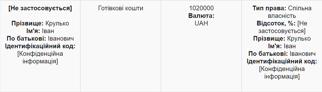 Іван Крулько. Якщо вірити декларації, то Іван Іванович і його дружина довіряють національній валюті, оскільки зберігають кошти у гривнях. Свої заощадження депутат тримає в готівці, а його дружина – на банківському рахунку. Крулько – гривневий мільйонер. У декларації він вказав, що володіє 1 мільйоном 20 тисячами гривень.