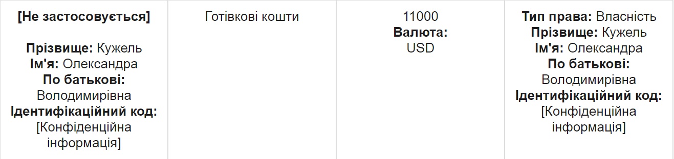 Олександра Кужель. У цій декларації нулів небагато. $11 тисяч – це всі грошові активи, які задекларувала депутат ВРУ.