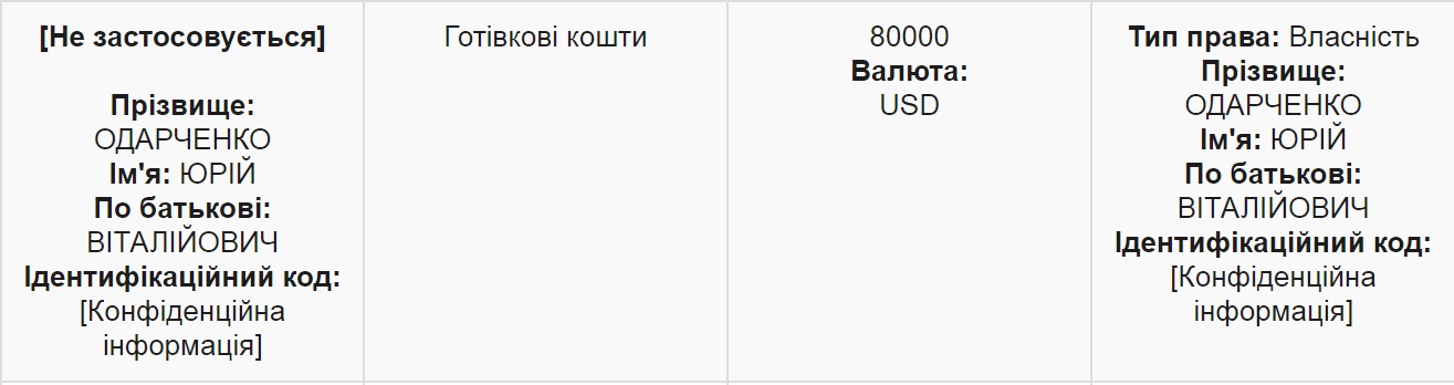 Юрій Одарченко. Народний обранець заадекларував $80 тисяч. Ще $45 тисяч він позичив невідомій особі. Коштів в іншій валюті депутат не зберігає.