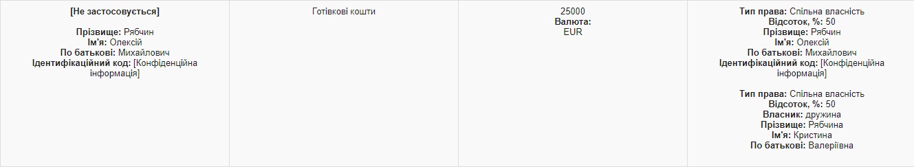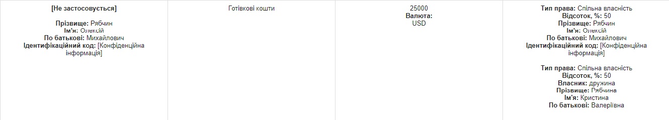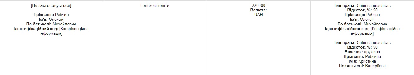Олексій Рябчин. Всією готівкою порламентар володіє порівну з дружиною. Крім гривень, доларів і євро, народний депутат має “на руках” ще й англійські фунти. І так, до декларації Рябчин вніс: 220 тисяч гривень, по 25 тисяч доларів і євро та 750 фунтів.