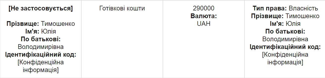 Юлія Тимошенко. У чоловіка лідера ВО “Батьківщина” “на руках” сотні тисяч доларів і євро. Сама Юлія Володимирівна задекларувала лише 290 тисяч гривень.