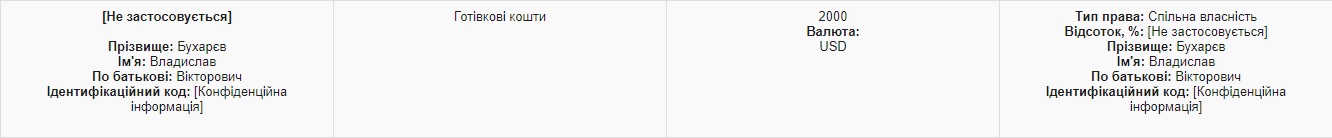 Владислав Бухарєв. Сім’я депутата із Сумщини воліє зберігати кошти в австрійському і латвійському банках. У самого ж парламентаря готівки зовсім небагато: $2 тисячі, €1,5 тисячі та 36 тисяч гривень. Усі кошти Бухарєв задекларував як спільні. Щоправда, їхніх співвласників він не вказав.