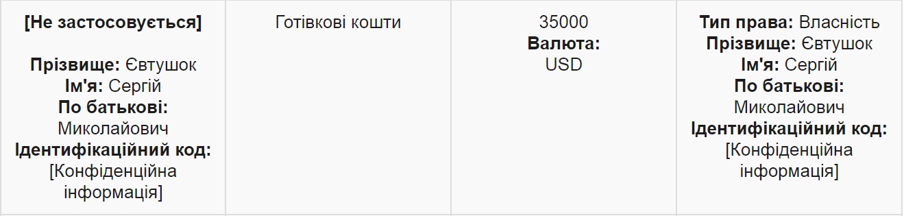 Сергій Євтушок. У рівненського депутата з грошима не густо. Ні в нього, ні у його дружини немає депозитних рахунків у банках. З готівки депутат другий рік поспіль задекларував $35 тисяч. Гривень і євро у нього немає “на руках”.