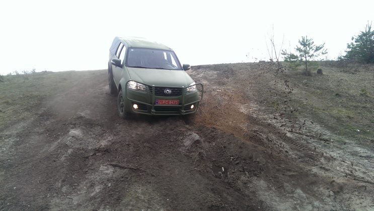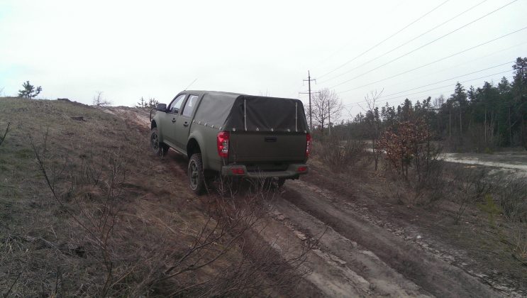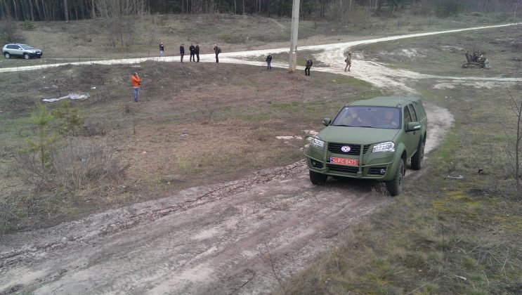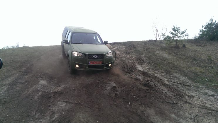 Понятно, что на заводе о своем продукте не говорят не беспристрастно. В более-менее реальных условиях эксплуатации журналистам Autonews.ua получилось увидеть «Богдан-2351» на мини-полигоне в лесничестве под Черкассами. Он включал в себя «стометровку» лесной дороги, подъем на горку и спуск с нее с уклоном порядка 14 градусов.