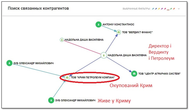 На схемі: зв’язки директора Вердикт-фінанс (за відкритими джерелами аналітичної системи YouControl)