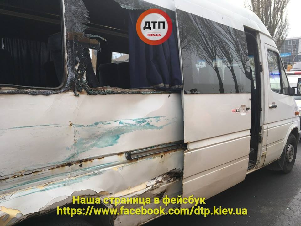 За словами очевидців, намагаючись уникнути лобового зіткнення, маршрутка різко звернула наліво, однак вантажівка все одно зацепила її.