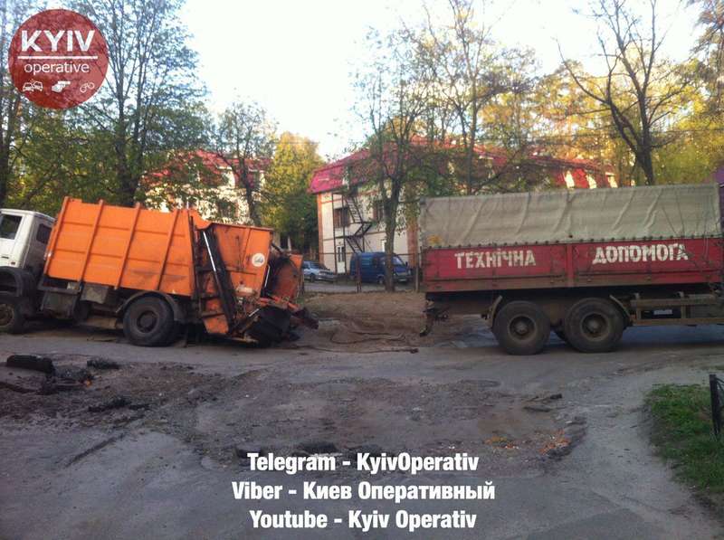 "Думаете, видели все?" В Киеве мусоровоз ушел под землю
