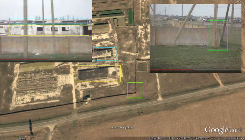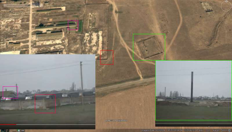 Конечно, одних таких косвенных свидетельств мало, поэтому наша команда искала дальше. В Youtube мы обнаружили несколько видео, датированных серединой марта 2014 г., с военной техникой недалеко от села. Самым интересным из них оказалось это: