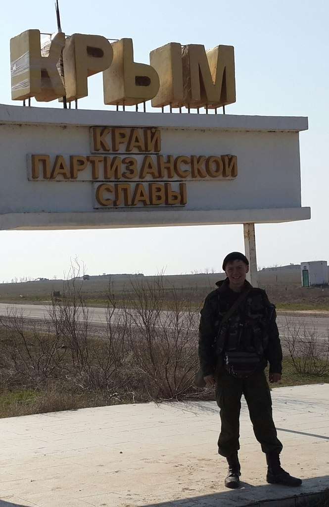 Ещё у одного военнослужащего есть фотография у одноименной стелы, расположенной на въезде в Армянск.