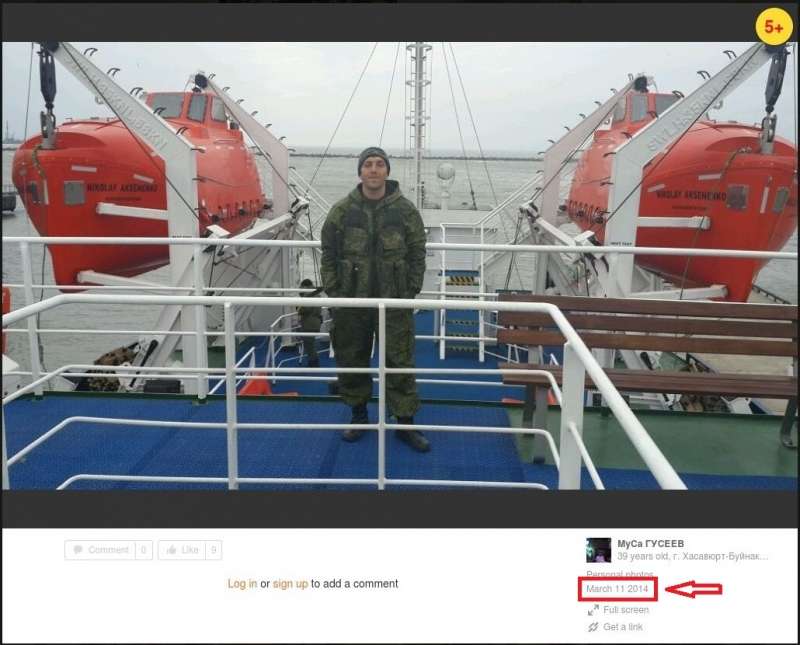Так, например, Муса Ахмедович Гусеев, прапорщик войсковой части 63354 (136-я ОМСБр, ППД: Буйнакск, Герей-Авлак и Ботлих в Республике Дагестан) выложил фото с парома 11 марта 2014 года: