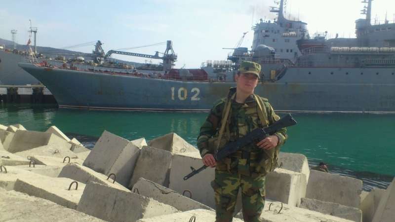 Разведчик-пулеметчик 2 отделения 2 группы специального назначения 1 роты специального назначения батальона специального назначения Хаматаев Магомед Алаутдинович на борту парома «Николай Аксененко», порт «Крым»