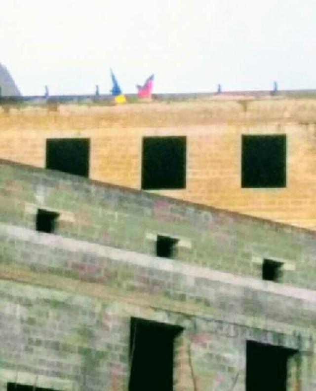 Сегодня воккупированном Донецке неизвестные патриоты вывесили на одном недостроев в центре города, расположенном на Набережной напротив Дворца детского и юношеского творчества, сине-желтый флаг Украины и красно-черный флаг УПА.
