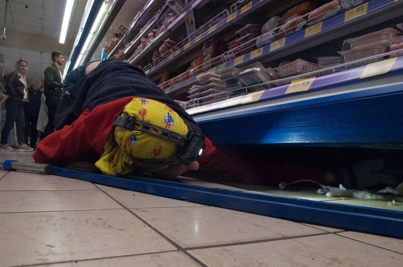 Ловили пятеро: в Киеве кот "захватил" колбасный отдел в супермаркете