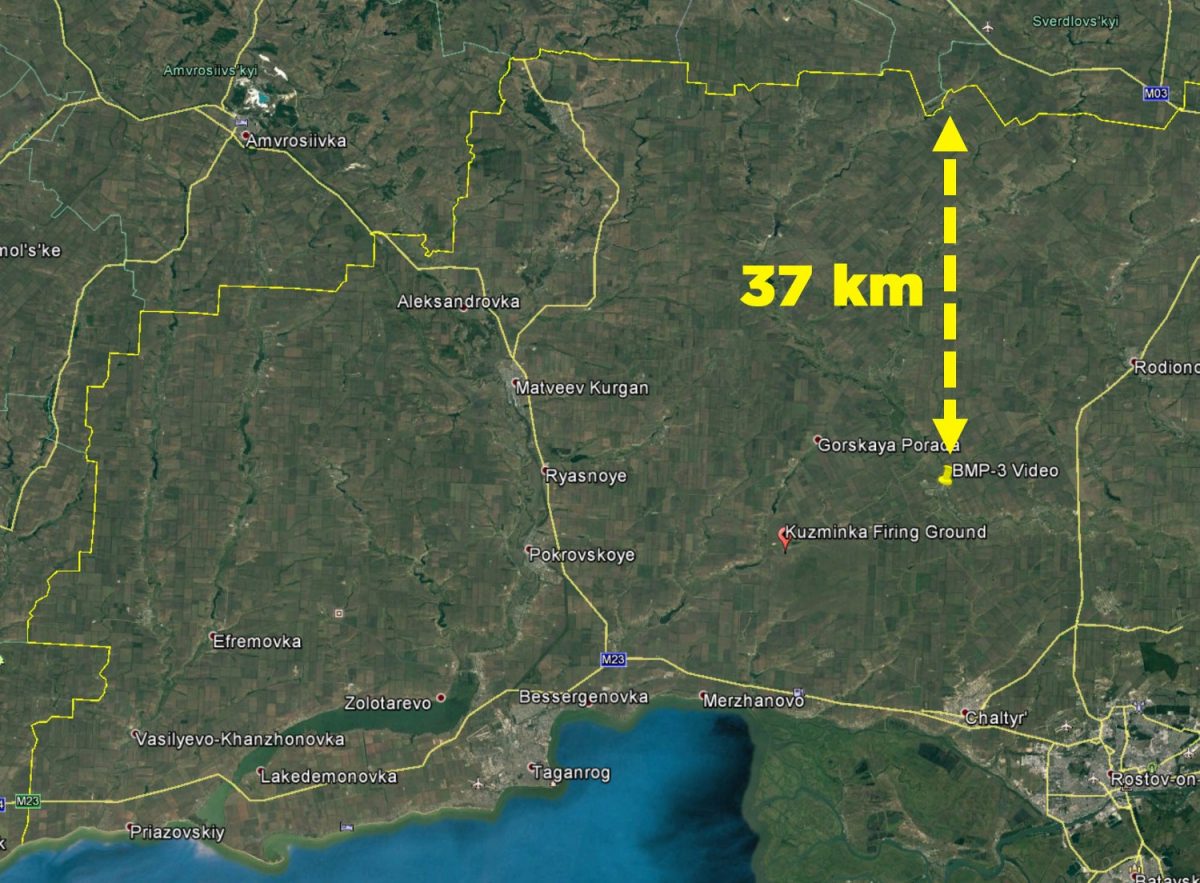 Рассматривая видео от 2 апреля и от 8 апреля можно предположить, что это одни и те же БМП-3, поскольку видео сняты довольно близко друг от друга. Кроме того, можно предположить, что пунктом назначения колонны был именно Кузьминский полигон, где располагаются российские войска, отметили в DFRLab.