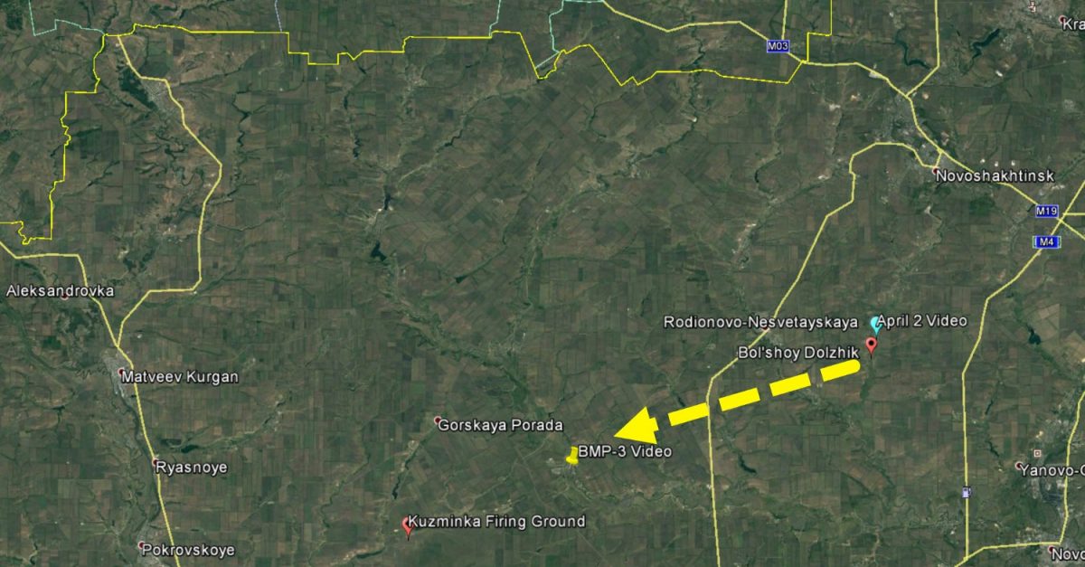 Это было не первое видео, снятое в этом районе в начале апреля. 2 апреля в соцсетях было опубликовано видео военной колонны в Ростовской области, в состав которой, как и на видео, снятом в Петровке, входили БМП-3.