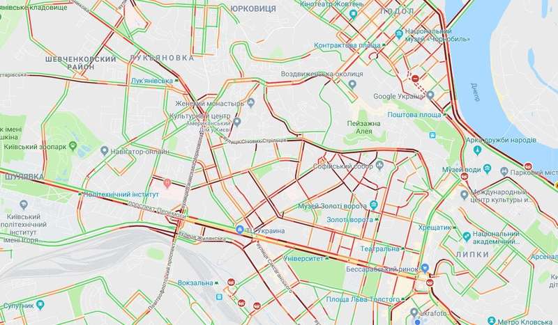 Традиционно медленно движутся автомобили в районе центральных станций метро: "Театральная", "Льва Толстого", "Университет", "Крещатик", "Майдан Независимости" и "Дворец спорта".