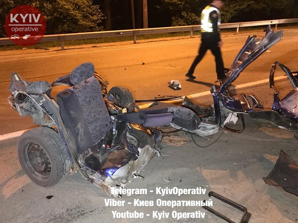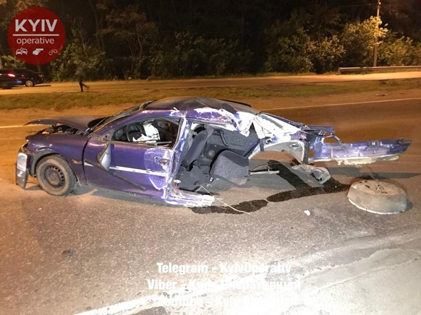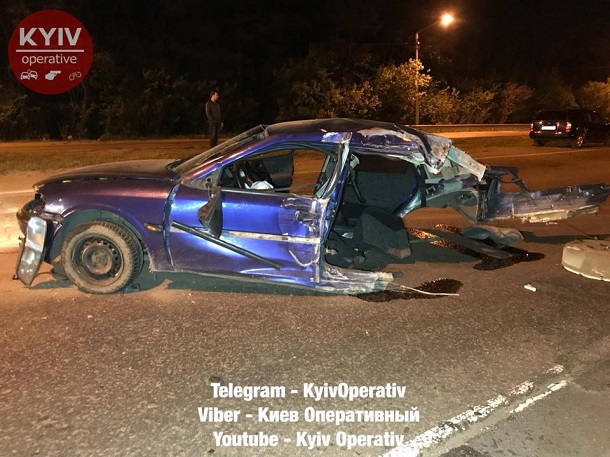 Ночью во вторник, 1 мая, в Киеве произошло серьезное ДТП, в результате которого автомобиль разорвало на куски, а водитель скрылся.