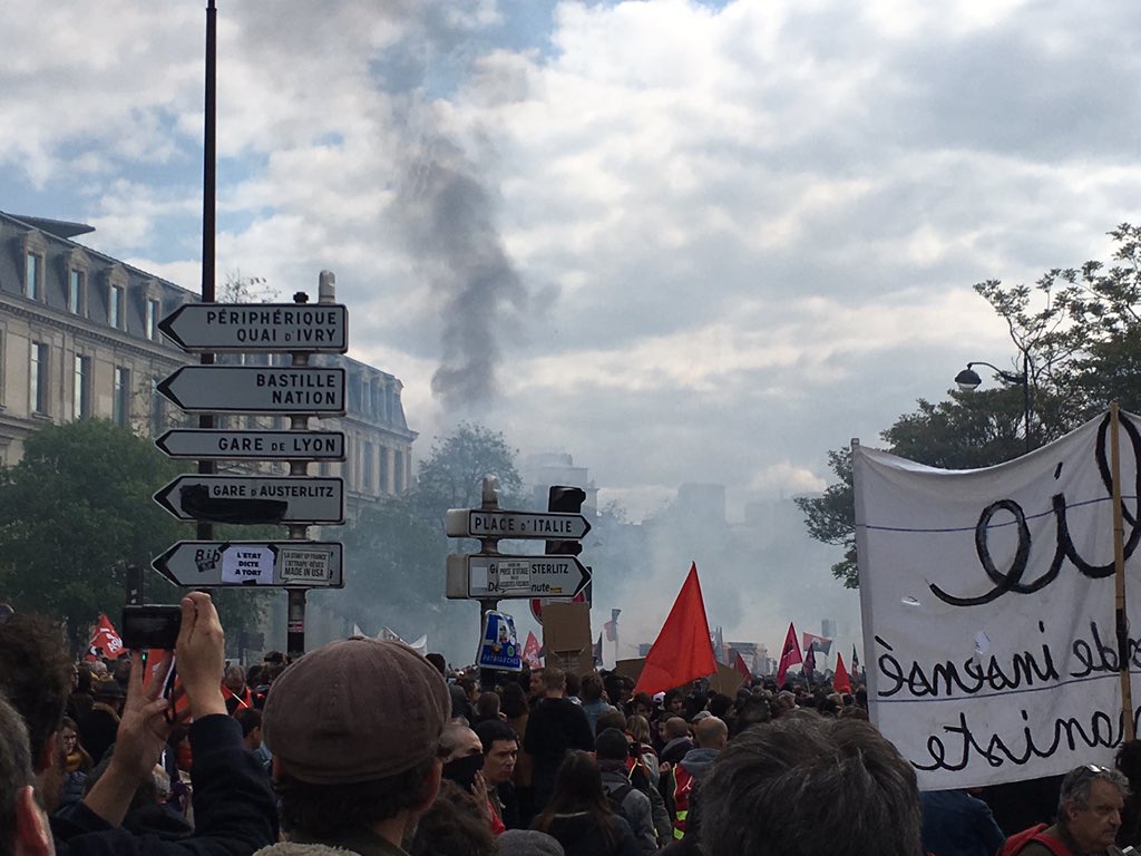 Молодежь была одета в черное, а лица скрывала масками. Огненными бутылками также закидывали станцию обслуживания автомобилей Renault. Протестующие начали устанавливать баррикады на бульваре.
