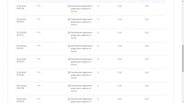 За какие-то непонятные «развлекательные услуги» тырилось ровно по 18 гривен еженедельно.