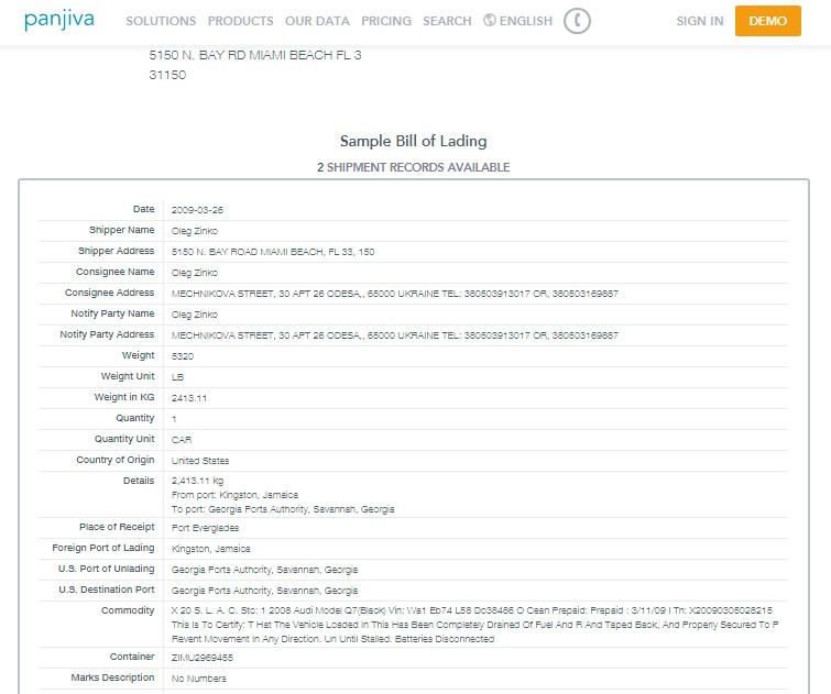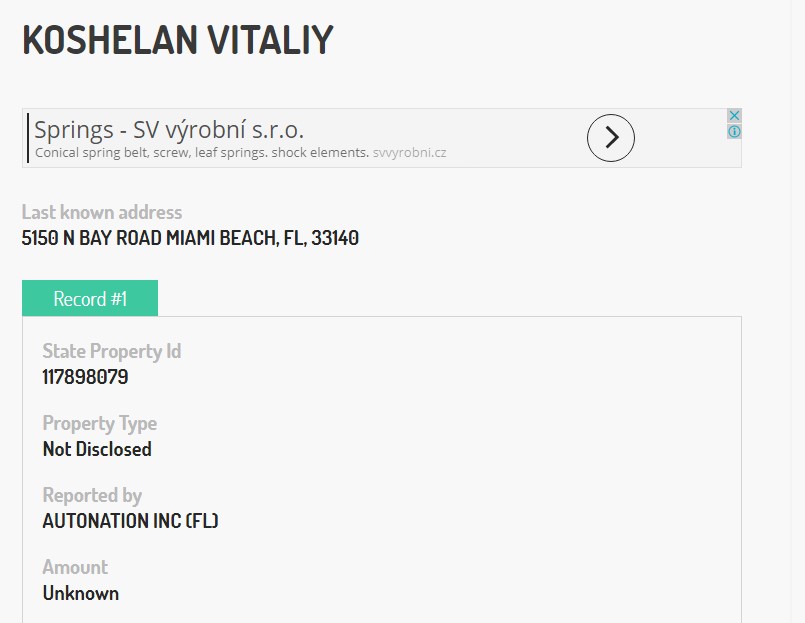У 2009-му Олег Зінько, тесть і бізнес-партнер Володимира Галантерника, замовляє автівку зі своєї адреси в Майамі, чим привертає увагу до будівлі 5150 N Bay Rd, Miami, Florida, 33140.