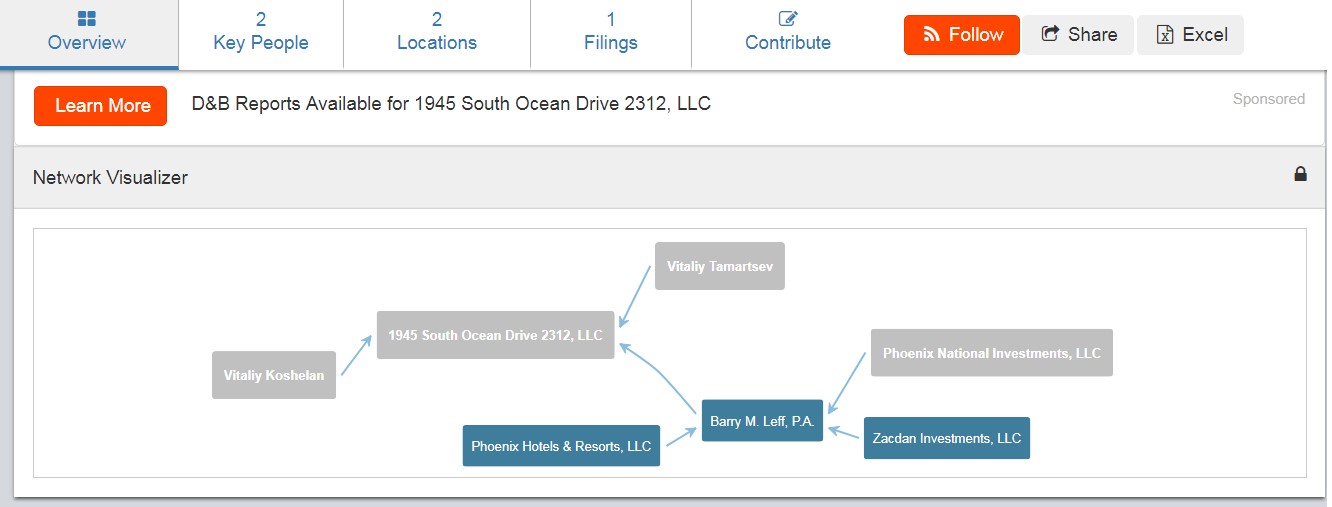 Більш того, Кошелан значиться у засновниках 1945 South Ocean Drive 2312, LLC разом із сумно відомим в Одесі підприємцем-забудовником Віталієм Тамарцевим (http://dumskaya.net/news/gorsovet-otdal-biznesmenam-esche-polgektara-lang-047422/)